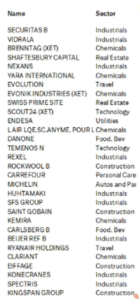 Συνεπώς, οι 30 τίτλοι που θα αποτελέσουν τους μεγαλύτερους κερδισμένους από την πτώση των τιμών της ενέργειας είναι οι εξής: