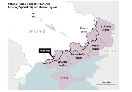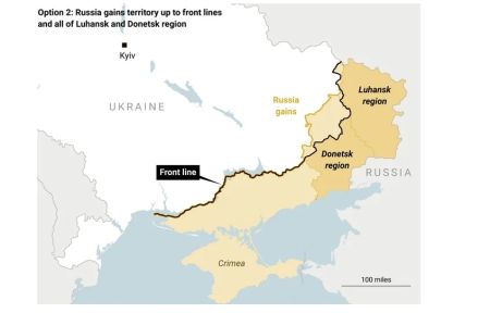 Μία πιθανή ανταλλαγή θα μπορούσε να φέρει ολόκληρο το Ντονμπάς στον έλεγχο της Ρωσίας με αντάλλαγμα την επιστροφή τμημάτων της Χερσώνας στην Ουκρανία. Ωστόσο, αυτό το σενάριο θεωρείται απίθανο γιατί – εκτός από τις ενστάσεις της Ουκρανίας- έτσι «κόβεται» η χερσαία γέφυρα της Ρωσίας προς την Κριμαία, μέσω της Χερσώνας.