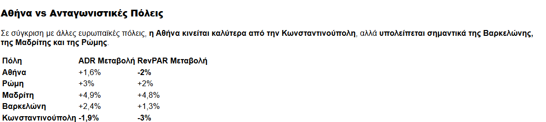 - ADR (Μέση Τιμή Δωματίου): 207,85€ (αύξηση 1,1% έναντι 205,54€ το 2024)