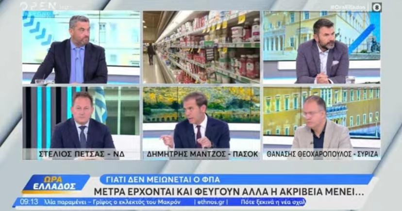A blanket 30% VAT reduction is ruled out, with Petsas warning it would cost €7.5 billion in lost revenue.