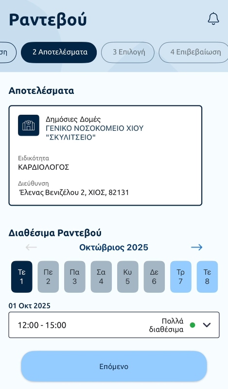 Even in its first hours of launch, citizens successfully booked appointments, such as dermatologists at “G. Papanikolaou” Hospital in Thessaloniki for October 1st — no delays, no surprises.