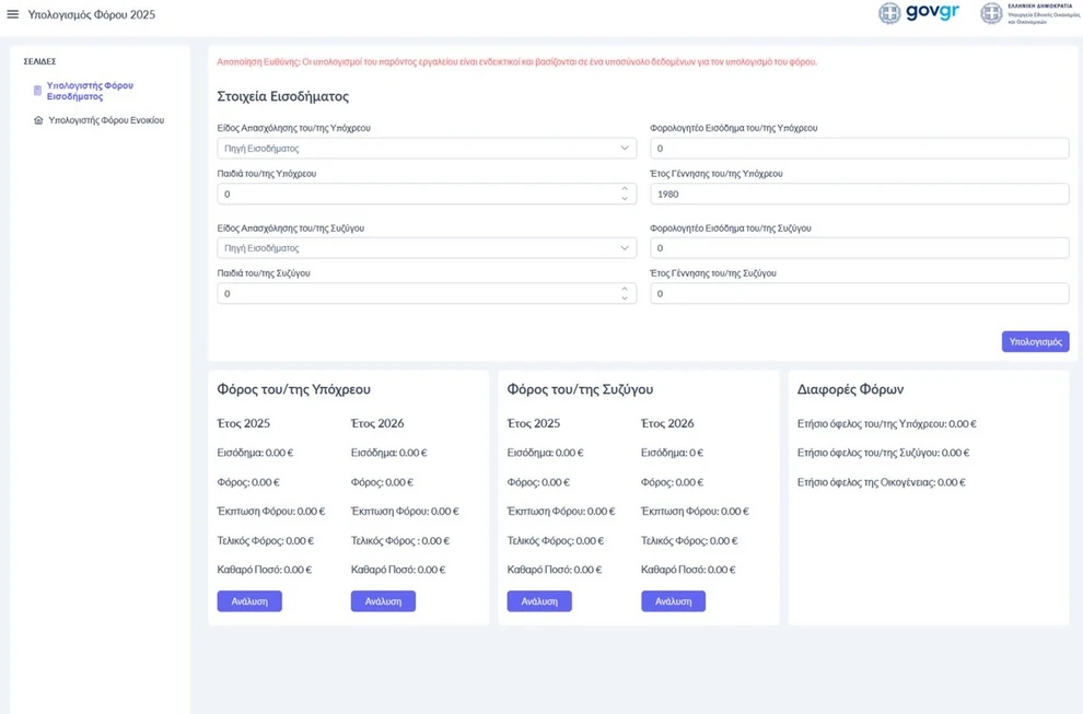 Σε μερικά δευτερόλεπτα, κάθε πολίτης μπορεί να διαπιστώσει με σχετική ακρίβεια τις μειώσεις στη φορολογία που θα ισχύσουν από το 2026. Για τους μισθωτούς, οι μειώσεις αυτές ισοδυναμούν με αυξήσεις μισθών από τον Ιανουάριο της νέας χρονιάς, ενώ για τους ελεύθερους επαγγελματίες το όφελος θα αποτυπωθεί το 2027.