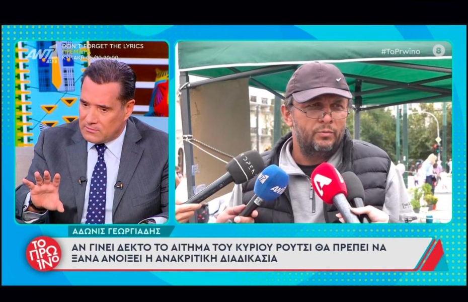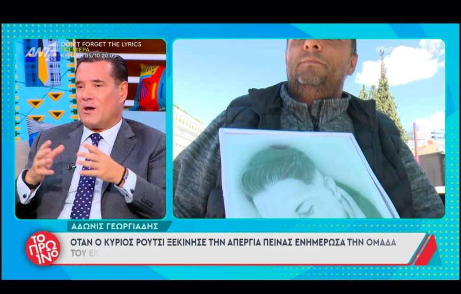 «Ο κύριος Ρούτσι αρνείται τις υπηρεσίες μας. Έχει κάθε δικαίωμα να το κάνει, αλλά δεν μπορεί να ισχυρίζεται πως δεν ήμασταν εκεί», δήλωσε ο Άδωνις Γεωργιάδης, αποδομώντας τις δημόσιες δηλώσεις του απεργού ότι το κράτος τον «αγνοεί».