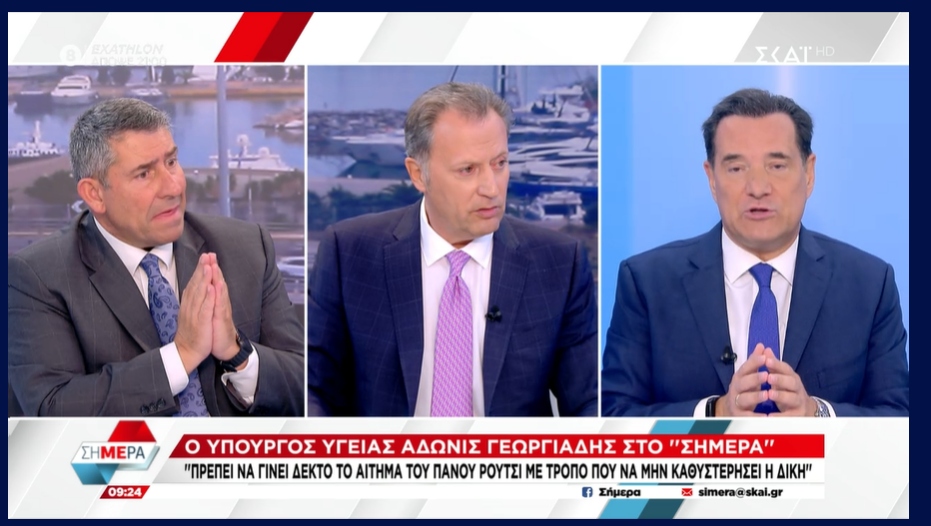 Σε συνέντευξή του στον ΣΚΑΪ TV, ο Άδωνις Γεωργιάδης εξήγησε τη θεσμική εμπλοκή του στην υπόθεση, ως υπουργός Υγείας, για να διασφαλίσει ότι ο απεργός πείνας Πάνος Ρούτσι θα έχει ιατρική φροντίδα και άμεση πρόσβαση σε βοήθεια.
