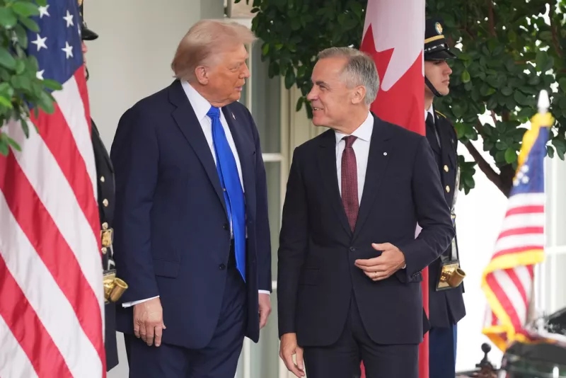 Ο πρωθυπουργός του Καναδά Μαρκ Κάρνεϊ πραγματοποίησε την Τρίτη τη δεύτερη επίσκεψή του στον Λευκό Οίκο μέσα σε πέντε μήνες, υπό αυξανόμενη πίεση για την αντιμετώπιση των αμερικανικών δασμών σε χάλυβα, αυτοκίνητα και άλλα αγαθά που πλήττουν την οικονομία του Καναδά. Ο Κάρνεϊ και ο Τραμπ, χαμογελαστοί και οι δύο, έδωσαν τα χέρια και συνομίλησαν για λίγα δευτερόλεπτα πριν εισέλθουν στο κτίριο. Το πρόγραμμά τους προβλέπει μια κατ’ ιδίαν συνάντηση και στη συνέχεια γεύμα.