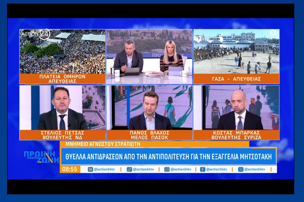 Σε μια αποκαλυπτική συνέντευξη στο Action24, ο Στέλιος Πέτσας ανέδειξε με σαφήνεια τη θέση του για το μνημείο του Άγνωστου Στρατιώτη, τονίζοντας ότι ο χώρος αυτός δεν μπορεί να καταληφθεί ή να χρησιμοποιηθεί για πολιτικές ή μικροπολιτικές εκμεταλλεύσεις.