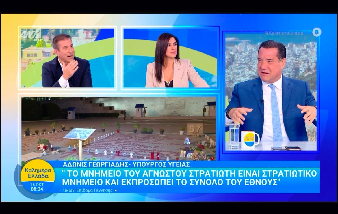 Στο επίκεντρο της συνέντευξης του Άδωνι Γεωργιάδη βρέθηκε η μεταφορά της ευθύνης για το Μνημείο του Αγνώστου Στρατιώτη στο Υπουργείο Άμυνας, μια κίνηση που προκάλεσε πολιτική αντιπαράθεση. Ο υπουργός ήταν κατηγορηματικός:«Το μνημείο είναι στρατιωτικό. Το φρουρεί η Προεδρική Φρουρά. Είναι αφιερωμένο σε όλους τους Έλληνες που έπεσαν στα μέτωπα — όχι σε απεργίες ή συνδικαλιστικά αιτήματα».