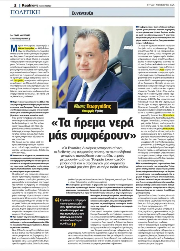 Σε μια περίοδο έντονων γεωπολιτικών διεργασιών στην Ανατολική Μεσόγειο —και με το Αιγαίο να βρίσκεται ξανά στο επίκεντρο— ο Άδωνις Γεωργιάδης υπερασπίζεται πλήρως την κυβερνητική στρατηγική: