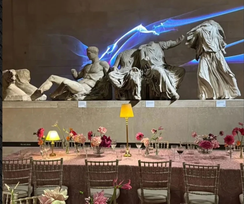 «Τέτοιες ενέργειες είναι προσβλητικές για τα πολιτιστικά αγαθά και θέτουν σε κίνδυνο τα ίδια τα εκθέματα», υπογράμμισε η υπουργός, σχολιάζοντας την επιλογή των Βρετανών να χρησιμοποιήσουν τα γλυπτά-σύμβολα του ελληνικού πολιτισμού ως σκηνικό για επίδειξη πλούτου και επιφανειακής φιλανθρωπίας.