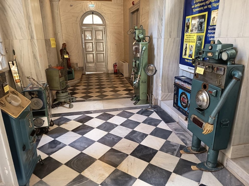 Το κτήριο του Εργατοϋπαλληλικού Κέντρου Κυκλάδων που φιλοξενεί συλλογή από παλαιά ρομπότ που είναι λειτουργικά στις μέρες μας.