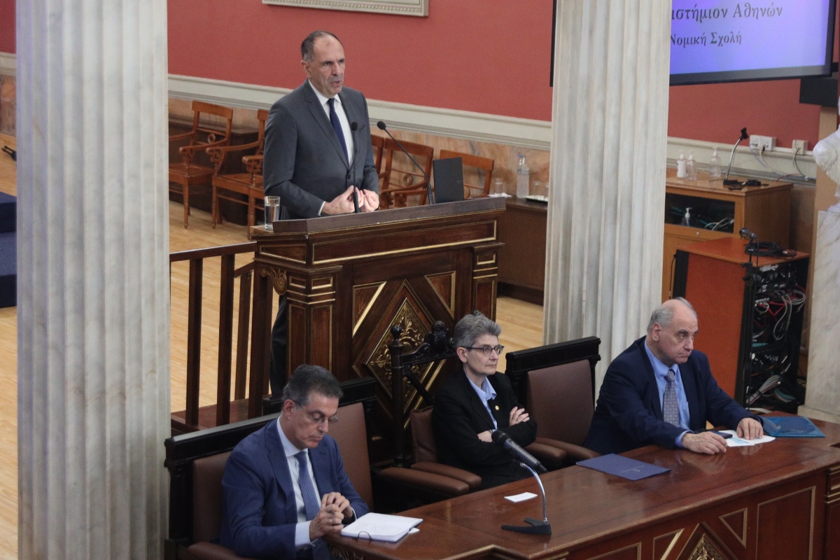 Ο κ. Γεραπετρίτης τόνισε ότι δεν νοείται σήμερα η οποιαδήποτε αλλαγή συνόρων δια της βίας, και επισήμανε ότι σε πολλές περιπτώσεις το Διεθνές Δίκαιο στερείται αυτής της αποτελεσματικότητας που απονέμει η κυριαρχία, που είναι η λογοδοσία και η εφαρμοστικότητα του Δικαίου. «Το Δίκαιο οφείλει να εφαρμόζεται» είπε, και αναφερόμενος στον σημερινό «μεταβαλλόμενο κόσμο» ανέφερε:«Αυτά που βιώνουμε σήμερα νομίζω είναι πραγματικά χωρίς προηγούμενο τόσο στην Ευρώπη, όσο και στον κόσμο. Δεδομένα, τα οποία υφίσταντο επί δεκαετίες, όπως για παράδειγμα ότι η Ευρώπη είναι απροσπέλαστη, είναι θωρακισμένη πλέον έχουν εκλείψει. Στην καρδιά της Ευρώπης υφίσταται ένας μεγάλος πόλεμος, ένας εξαιρετικά αιματηρός πόλεμος, ενώ η ίδια η Ευρωπαϊκή Ένωση βάλλεται. Και βάλλεται τόσο εκ των έσω, αλλά βάλλεται και από τους ίδιους τους λαούς, οι οποίοι πλέον αμφισβητούν ανοιχτά την ισχύ, την πειθώ της Ευρωπαϊκής Ένωσης, με βασικό επιχείρημα ότι έχει αδυναμία στη λήψη των αποφάσεων. Αλλά, κυρίως, επειδή αδυνατεί να μπορέσει να εισφέρει στην απάμβλυνση των κρίσεων, οι οποίες βρίσκονται γύρω μας. Η βασική αρχή ότι η Ευρώπη είναι θωρακισμένη και ότι δεν νοείται η οποιαδήποτε αλλαγή συνόρων δια της βίας, πλέον αποτελεί παρελθόν μετά τη ρωσική εισβολή στην Ουκρανία. Και μέσα σ’ αυτό το περιβάλλον υπάρχουν μια σειρά από παράδοξα, τα οποία διαμορφώνουν αν θέλετε και τη νέα αντίληψη περί διεθνούς αρχιτεκτονικής ασφαλείας».