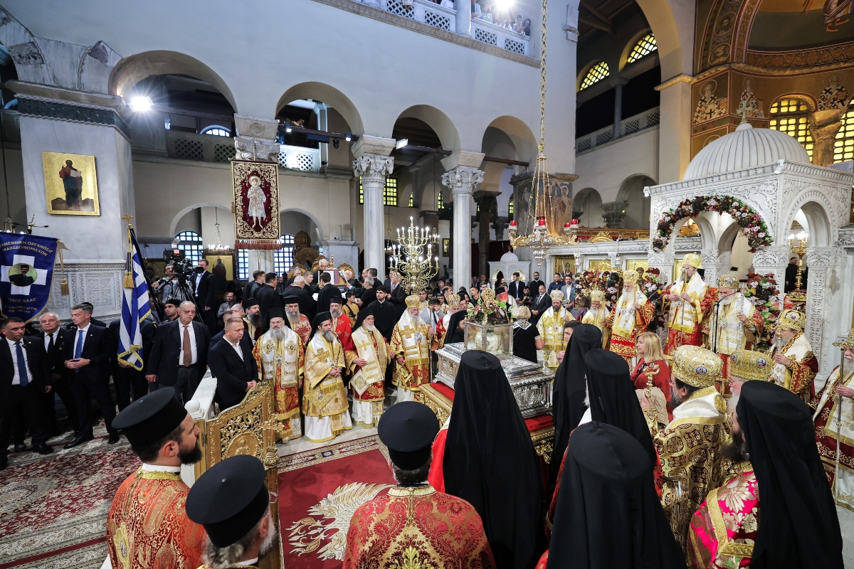 Όλοι μαζί υποδέχθηκαν τον Πρόεδρο της Κυπριακής Δημοκρατίας Νίκο Χριστοδουλίδη, και στη συνέχεια εισήλθαν στον ναό. Στη δοξολογία παρευρέθηκαν, επίσης, ο πρόεδρος του ΣΥΡΙΖΑ-Προοδευτική Συμμαχία Σωκράτης Φάμελλος, ο πρόεδρος της ΝΙΚΗΣ Δημήτρης Νατσιός, η βουλευτής Ράνια Θρασκιά, ως εκπρόσωπος του ΠΑΣΟΚ, ο ευρωβουλευτής Εμμανουήλ Φράγκος, ως εκπρόσωπος της Ελληνικής Λύσης, ο Επίτροπος στην Ευρωπαϊκή Ένωση, Απόστολος Τζιτζικώστας, υφυπουργοί (Ν. Ταχιάος, Στ. Καλαφάτης, Ελ. Ράπτη, Ν. Παπαϊωάννου, Α. Ευθυμίου), βουλευτές (Στρ. Σιμόπουλος. Δ. Κούβελας, Θ. Καράογλου, Π. Παππάς), ο ευρωβουλευτής Βαγγέλης Μεϊμαράκης, εκλεγμένοι της αυτοδιοίκησης, η ηγεσία των Ενόπλων Δυνάμεων και των Σωμάτων Ασφαλείας
