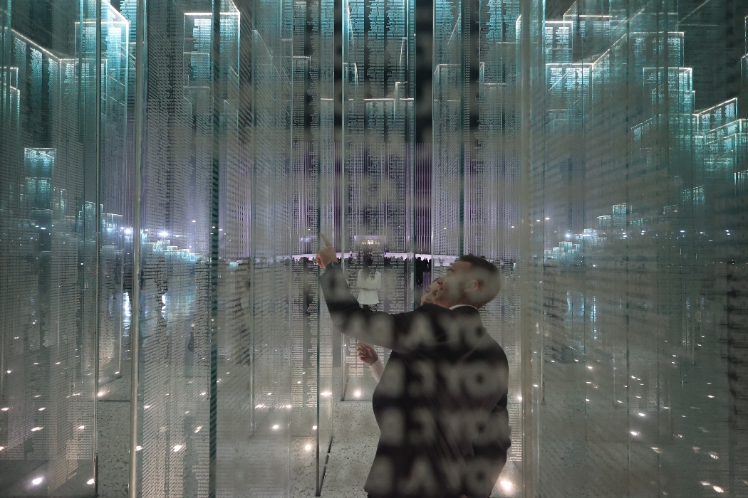 Ο καθηγητής Βαρώτσος εξήγησε:«Έκανα πρώτα ένα μνημείο. Τα ονόματα πεσόντων αιωρούνται προς το φως, για να θυμίζουν τη σημασία της ειρήνης – μόνο ο στρατός ξέρει τι σημαίνει πόλεμος».