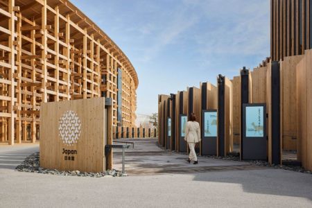 Το περίπτερο Ιαπωνίας: «Ανάμεσα σε Ζωές». Σχεδιασμός: Nikken Sekkei και Nendo design office. Ομόκεντροι δακτύλιοι. Ξύλινοι. Συμβολίζουν κύκλους ζωής. Εξερεύνηση: Βιωσιμότητα. Τεχνολογία. Όραμα κοινωνίας. «Αρμονική ταλάντωση» εσωτερικού-εξωτερικού.