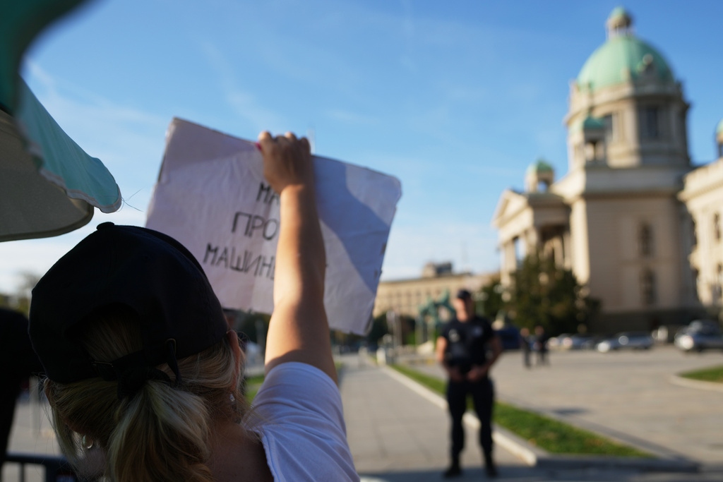 Η διαμαρτυρία συνοδεύτηκε από ένταση, όταν υποστηρικτές του προέδρου Βούτσιτς από τον καταυλισμό που έχει στηθεί εδώ και οκτώ μήνες μπροστά στο κοινοβούλιο εκτόξευσαν φωτοβολίδες και αντικείμενα προς τους συγκεντρωμένους. Ισχυρές αστυνομικές δυνάμεις αναπτύχθηκαν στο σημείο, χωρίς όμως να παρέμβουν ενεργά για την αποτροπή της βίας. Η κατάσταση χαρακτηρίζεται εύθραυστη, με την κοινωνία να παρακολουθεί με αγωνία την εξέλιξη της κινητοποίησης.