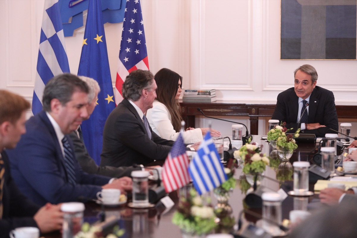 Το κατώφλι του πρωθυπουργικού Μεγάρου πέρασαν το απόγευμα της Τετάρτης οι Αμερικανοί υπουργοί Ενέργειας Chris Wright και Εσωτερικών Doug Burgum, συνοδευόμενοι από τον ομογενή αναπληρωτή υπουργό Εξωτερικών των ΗΠΑ, Μάικλ Ρήγα. Την υποδοχή έκανε η πρέσβειρα των ΗΠΑ στην Ελλάδα Κίμπερλι Γκίλφοϊλ, η οποία υπογράμμισε τη σημασία της συνεργασίας Ελλάδας και Ηνωμένων Πολιτειών στον ενεργειακό τομέα. Σε ανάρτησή της στα κοινωνικά δίκτυα, η κ. Γκίλφοϊλ τόνισε: «Με χαρά καλωσορίζω τον υπουργό Ενέργειας Chris Wright και τον υπουργό Εσωτερικών Doug Burgum στην Ελλάδα για το φετινό συνέδριο P-TEC! Το μέλλον είναι λαμπρό για τις ελληνοαμερικανικές σχέσεις».