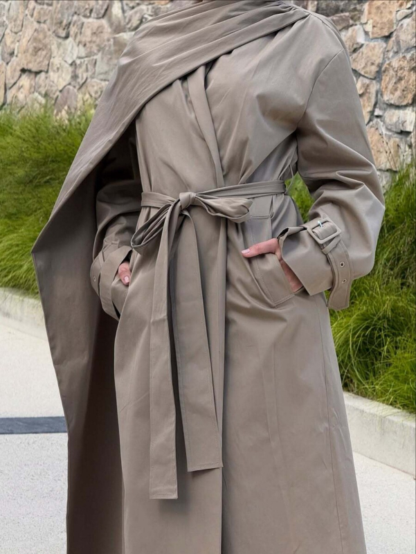 - Κεντρικό Κομμάτι: Το μπεζ scarf coat ως θεμέλιο του συνόλου