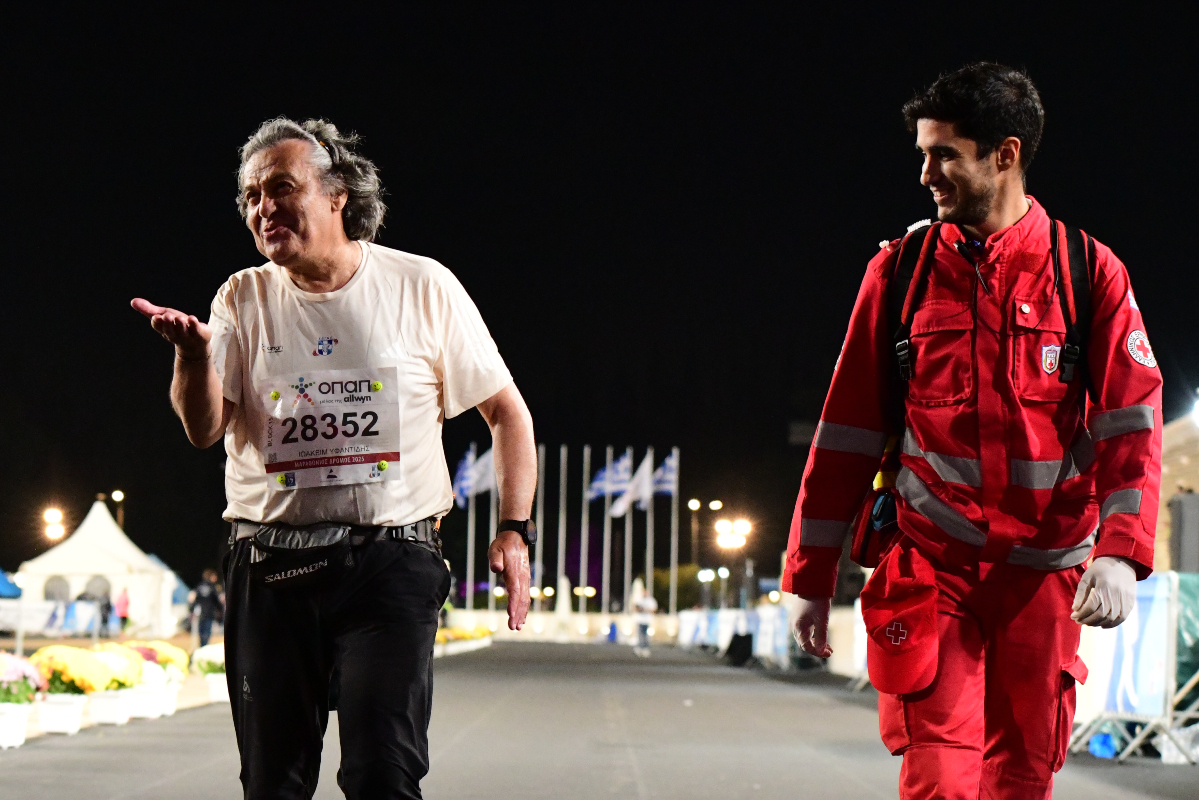 Συνταξιούχος ΕΥΔΑΠ – καταγραφέας μετρητών. 67 ετών. 30+ μαραθωνίους. Καλύτερος χρόνος: 2:47. Φέτος: Τελευταίος – αλλά πρώτος σε καρδιές. «Από μικρός τρέχω – τρέξιμο ζωή μου».