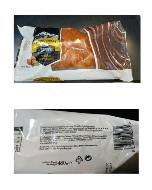 «Ο ΕΦΕΤ και ειδικότερα η Περιφερειακή Διεύθυνση Δυτικής Ελλάδας, στο πλαίσιο του Προγράμματος «Επίσημος Έλεγχος για την Παρακολούθηση των Επιπέδων Προσθέτων Τροφίμων και Αρωματικών Ουσιών σε Τρόφιμα», προέβη σε δειγματοληψία τροφίμου με τα στοιχεία: ”Τσουρέκι με γέμιση πραλίνα φουντουκιού – μικρές φάρμες του βουνού” με ημερομηνία ανάλωσης κατά προτίμηση πριν από τις 21/05/25 και αριθμό παρτίδας Lot 066A1, συσκευασίας καθαρού βάρους 480g, το οποίο παράγεται και συσκευάζεται στην Ελλάδα για λογαριασμό της ΜΑΡΚΕΤ ΙΝ Α.Ε.Β.Ε. που εδρεύει στην ΒΙ.ΠΑ. Μαρκοπούλου Μεσογαίας.
