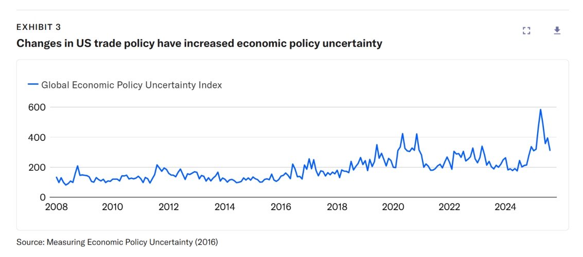 Οι κεντρικές τράπεζες βρίσκονται σε διαφορετικά στάδια προσαρμογής, με τη Fed να χαλαρώνει τη στάση της λόγω ανησυχιών για την αγορά εργασίας, ενώ άλλες οικονομίες επιλέγουν πιο προσεκτική στρατηγική. Παράλληλα, αυξάνονται οι κίνδυνοι από γεωπολιτικές εντάσεις, εμπορικούς περιορισμούς, αστάθεια αγορών ομολόγων και πιθανή διόρθωση στις αποτιμήσεις των εταιρειών τεχνολογίας.