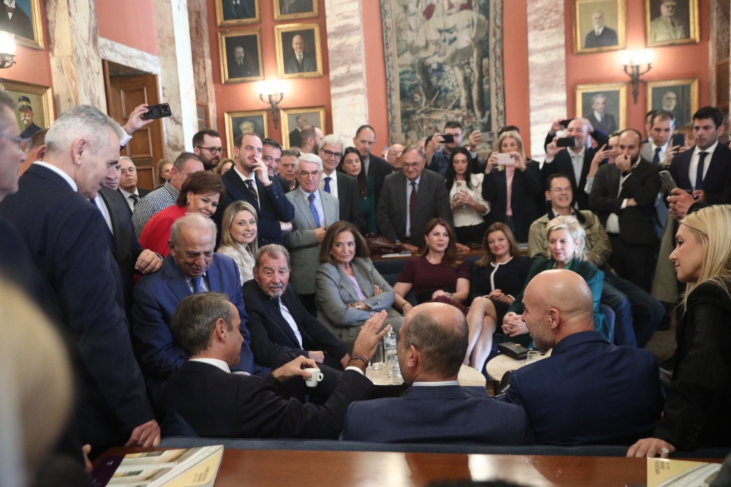 Ειδήσεις έβγαλε η συνάντηση και ο καφές που ήπιε με τους βουλευτές της ΝΔ στο εντευκτήριο της Βουλής ο Κυριάκος Μητσοτάκης.