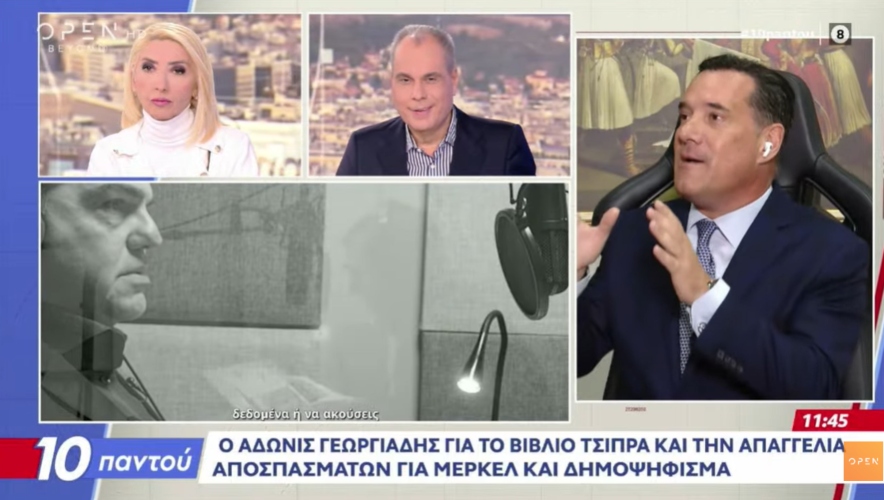 Ο αντιπρόεδρος της ΝΔ, Άδωνις Γεωργιάδης, παραχώρησε δηλώσεις σχετικά με τη δημόσια παρουσία του πρώην πρωθυπουργού Αλέξη Τσίπρα, αναφερόμενος ιδιαίτερα στην ανάγνωση αποσπασμάτων του βιβλίου του. Οι δηλώσεις έγιναν με αφορμή ηχητικό απόσπασμα που προβλήθηκε στην εκπομπή του Μάνου Βουλαρίνου στον ΣΚΑΪ.