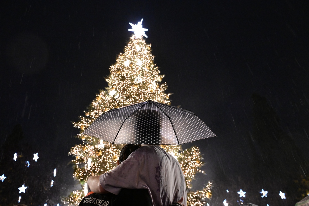 Φωταγωγήθηκε το δέντρο στην πλατεία Συντάγματος: Πλήθος κόσμου παρά την βροχή
