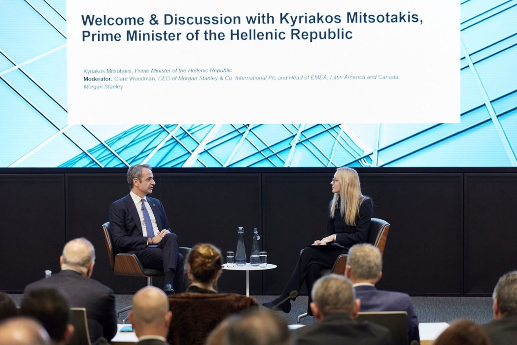 Το 4ο Greek Investment Conference πραγματοποιείται σήμερα και αύριο, 1–2 Δεκεμβρίου 2025, στο συνεδριακό κέντρο της Morgan Stanley στο Λονδίνο, με τη συμμετοχή 42 εισηγμένων εταιρειών από τη μεγάλη και τη μεσαία κεφαλαιοποίηση. Ο κ. Μητσοτάκης συμμετείχε σήμερα σε στρογγυλό τραπέζι για επενδυτές, ενώ ακολούθησε συζήτηση με την Clare Woodman, CEO Morgan Stanley & Co. International Plc και Head of EMEA, Latin America & Canada, Morgan Stanley.