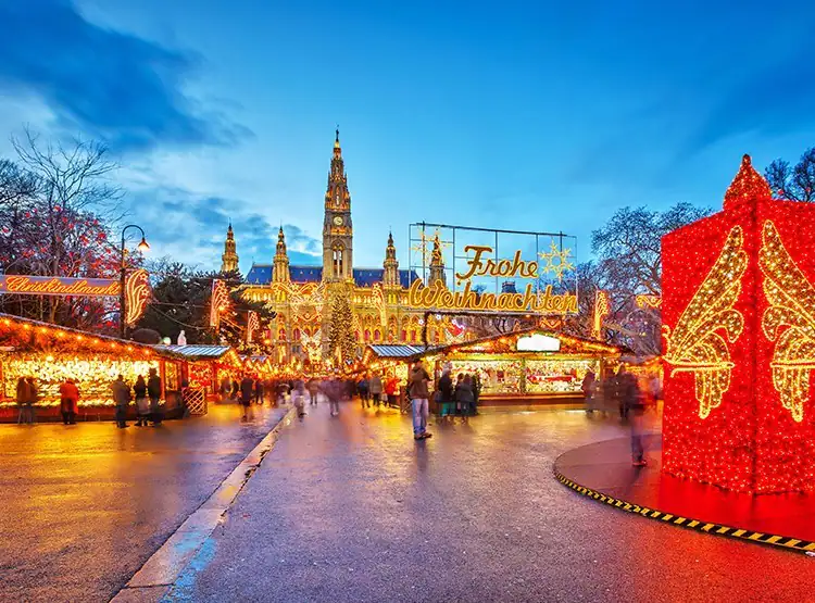 Η Βιέννη είναι ίσως ο πιο κλασικός προορισμός για όσους θέλουν να ζήσουν Χριστούγεννα βγαλμένα από παλιό παραμύθι. Η αυστριακή πρωτεύουσα γεμίζει με δεκάδες χριστουγεννιάτικες αγορές, με πιο διάσημο το Christkindlmarkt μπροστά από το επιβλητικό Δημαρχείο.