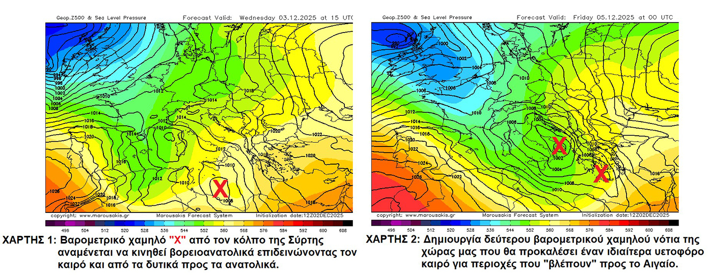 Βαρομετρικό χαμηλό από τον κόλπο της Σύρτης θα προκαλέσει ισχυρές βροχές και καταιγίδες με έμφαση στα κεντρικά, ανατολικά και νότια τμήματα.
