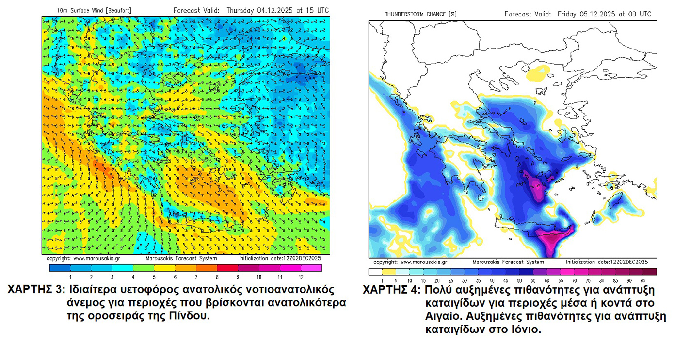 Αύριο Πέμπτη (04-12-2025) κατά τόπους ισχυρές βροχές και καταιγίδες προβλέπονται: