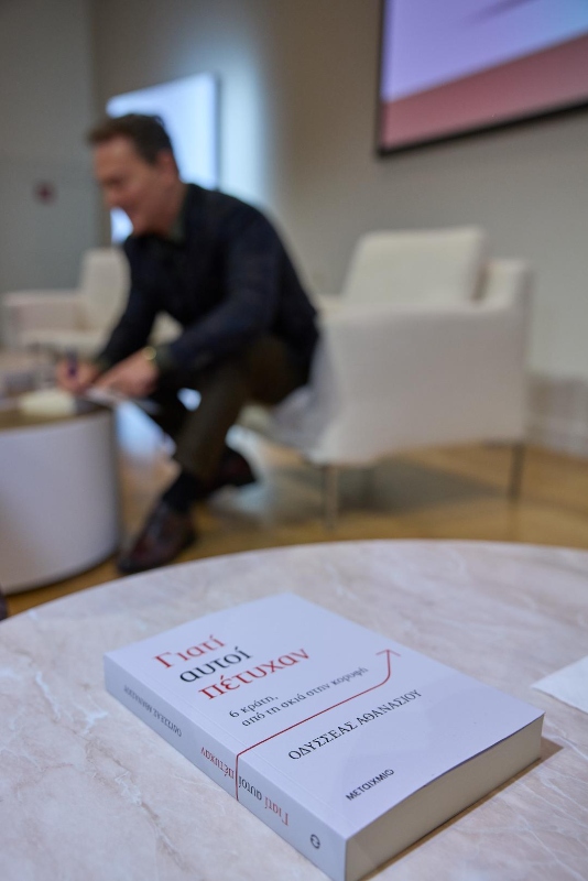 Η παρουσίαση του βιβλίου που πραγματοποιήθηκε στο κατάμεστο από κόσμο Αμφιθέατρο της Εθνικής Πινακοθήκης, κινήθηκε πάνω στα παραδείγματα αυτά, ανοίγοντας τον δρόμο σε μια σειρά από καίριες και πρωτότυπες σκέψεις γύρω από την έννοια της επιτυχίας σήμερα. Με το βλέμμα στραμμένο στους παράγοντες που επηρεάζουν την οικονομική ανάπτυξη, την πολιτική και κυρίως στον ρόλο του ανθρώπινου δυναμικού, ο συγγραφέας έθεσε ερωτήματα που αντανακλούν τις μεγάλες προκλήσεις αλλά και τις ευκαιρίες της εποχής μας.