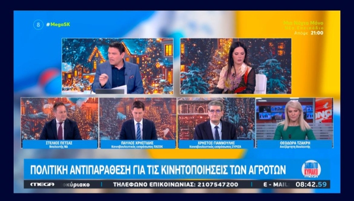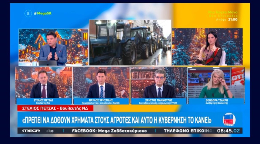 «Είμαι αναφανδόν υπέρ της πολιτικής λύσης. Οι αγρότες θέλουν καθαρές κουβέντες και όχι κραυγές»,τόνισε ο Στέλιος Πέτσας στην εκπομπή του Mega, επιλέγοντας έναν πιο μετρημένο τόνο μέσα σε ένα ιδιαίτερα φορτισμένο πάνελ.