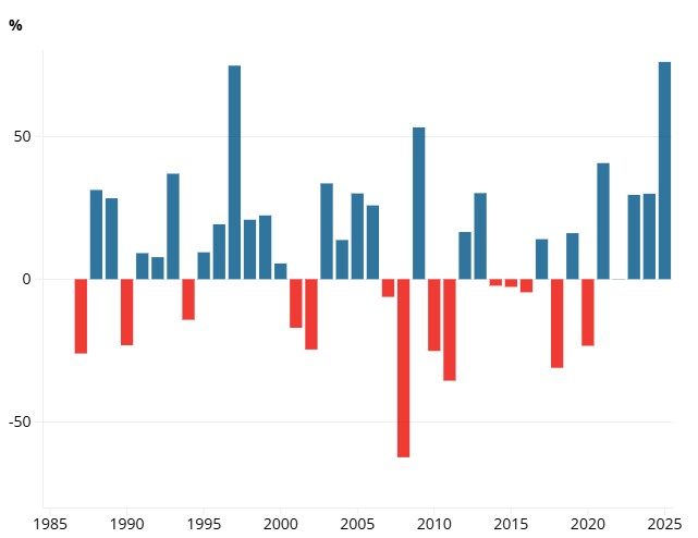 Το 2025 οι ευρωπαϊκές τράπεζες «έκλεψαν» την παράσταση: ο δείκτης EURO STOXX Banks +76% μέχρι 12 Δεκεμβρίου – η μεγαλύτερη ετήσια άνοδος ever, ξεπερνώντας το +74% του 1997. Όλες οι μετοχές του δείκτη θετικές, με πολλές τριψήφιες αποδόσεις: Société Générale +139%, Commerzbank +136%, Santander +110%, ABN Amro +102%, BBVA +101%, CaixaBank +96%, Deutsche Bank +92%. Αιτίες; «Γλυκό σημείο»: επιτόκια αρκετά υψηλά (ΕΚΤ σταμάτησε μειώσεις Ιούνιο 2025, deposit rate 2%), ισχυρή ανάπτυξη (Γερμανία απέφυγε βαθιά ύφεση, νότος από τουρισμό/ΕΕ funds), χαμηλές ζημίες δανείων, ισχυρά κεφάλαια (CET1 mid-teens) για μερίσματα/buybacks. Συν αποτιμήσεις από βαθιά discount και εισροές από διεθνείς επενδυτές.