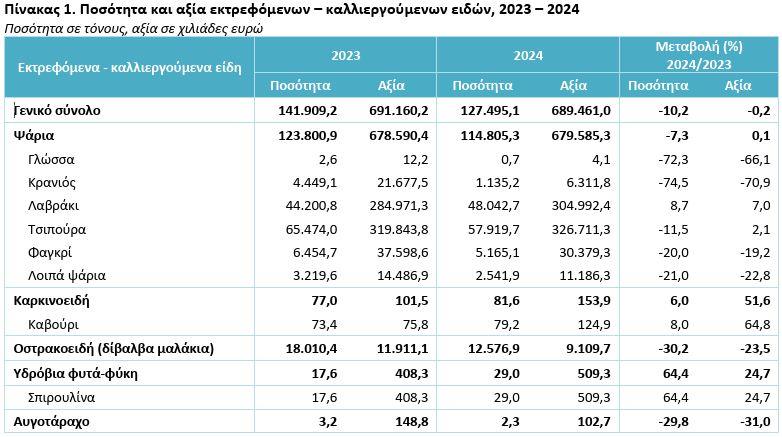 - Λαβράκι: 123.970 χιλ. ιχθύδια (–4,3%)