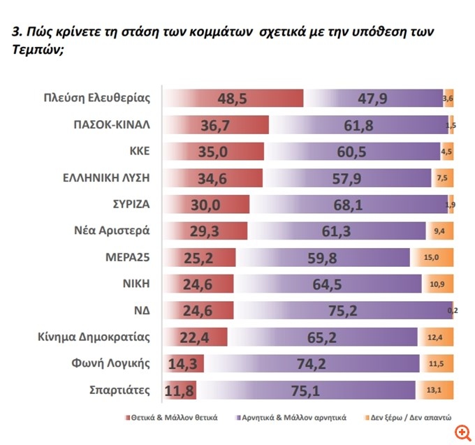 Μια πολιτική δημοσκόπηση που φέρνει τα πάνω‑κάτω στη σημερινή πολιτική σκηνή της χώρας, δείχνει ότι η διαχείριση της τραγωδίας στα Τέμπη συνεχίζει να επηρεάζει τις ισορροπίες στην κοινή γνώμη — με τη Νέα Δημοκρατία να διατηρεί την πρωτοκαθεδρία, αλλά το ΠαΣοΚ να ανακτά σημαντικό έδαφος, ενώ μικρότερα κόμματα ανεβάζουν στροφές.