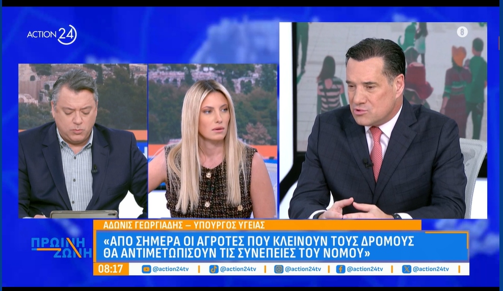 Άδωνις Γεωργιάδης ξεκαθαρίζει: Διάλογος με αγρότες συνεχίζεται, νόμος εφαρμόζεται, η κυβέρνηση δεν εκβιάζεται.Η πραγματική εικόνα των αγροτικών μπλόκων και η κυβέρνηση που δεν υποχωρεί