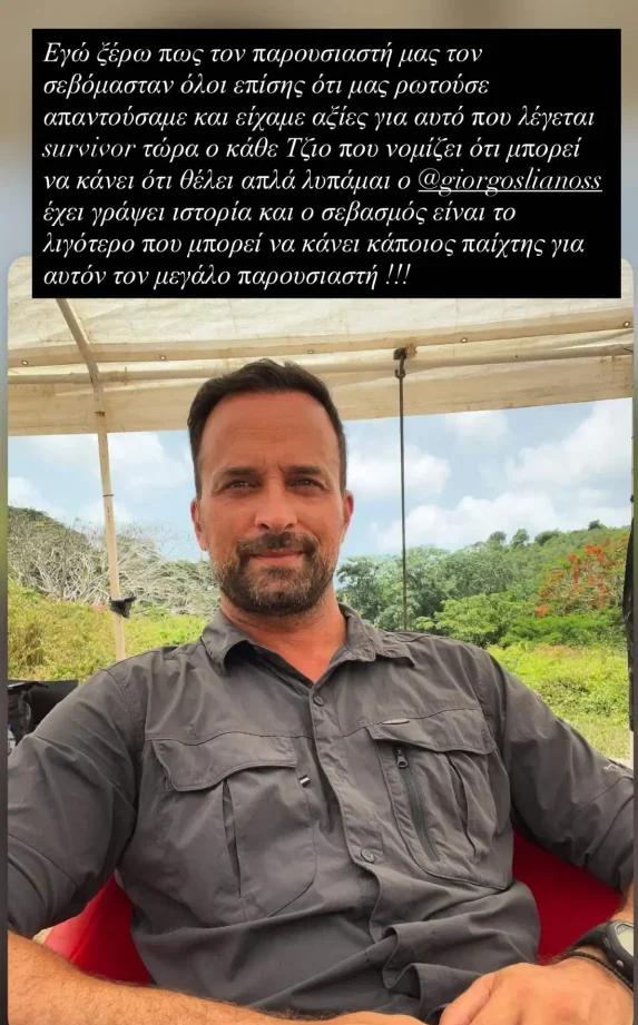 Μέσα από ανάρτησή του στα προσωπικά του μέσα κοινωνικής δικτύωσης, ο Τριαντάφυλλος δεν κράτησε ίχνος διπλωματίας. «Εγώ ξέρω ότι τον παρουσιαστή μας τον σεβόμασταν όλοι. Ό,τι μας ρωτούσε απαντούσαμε και είχαμε αξίες για αυτό που λέγεται Survivor», έγραψε χαρακτηριστικά, κάνοντας σαφή αναφορά στη δική του συμμετοχή, όπου – όπως τόνισε – οι παίκτες διατηρούσαν πάντα σεβασμό προς τον Γιώργο Λιανό.