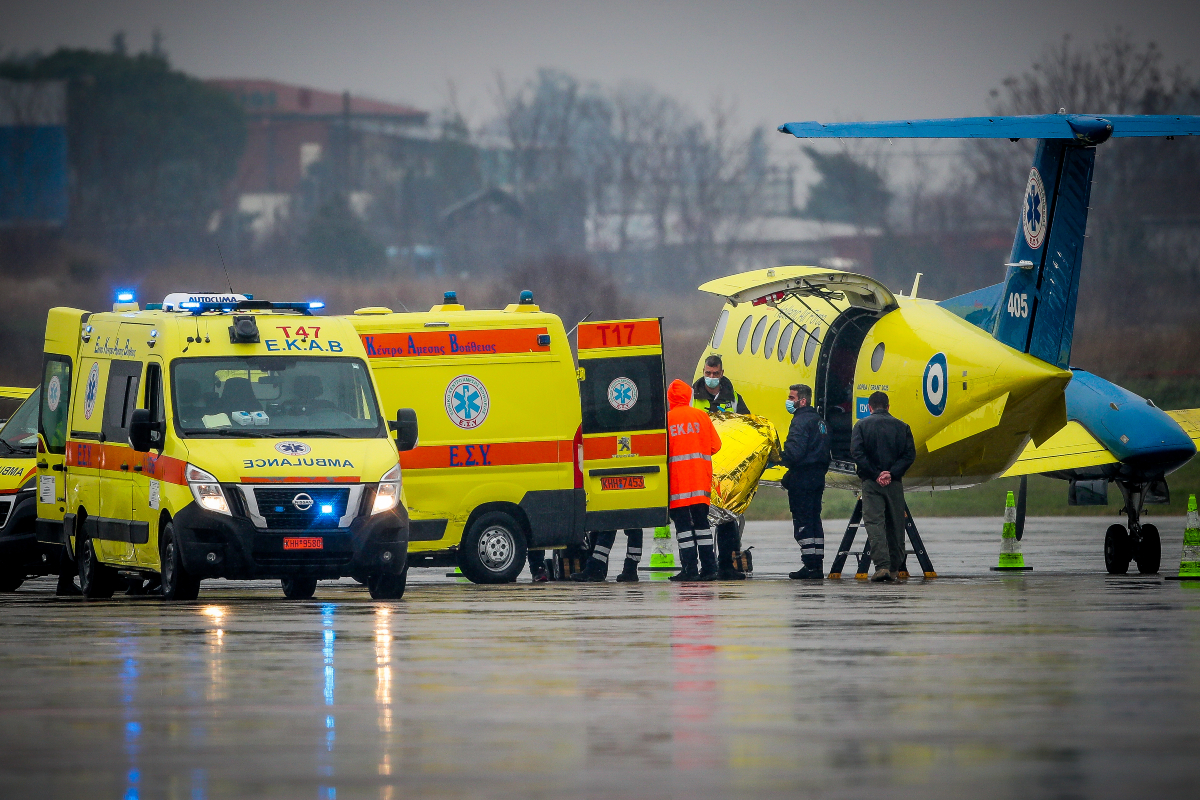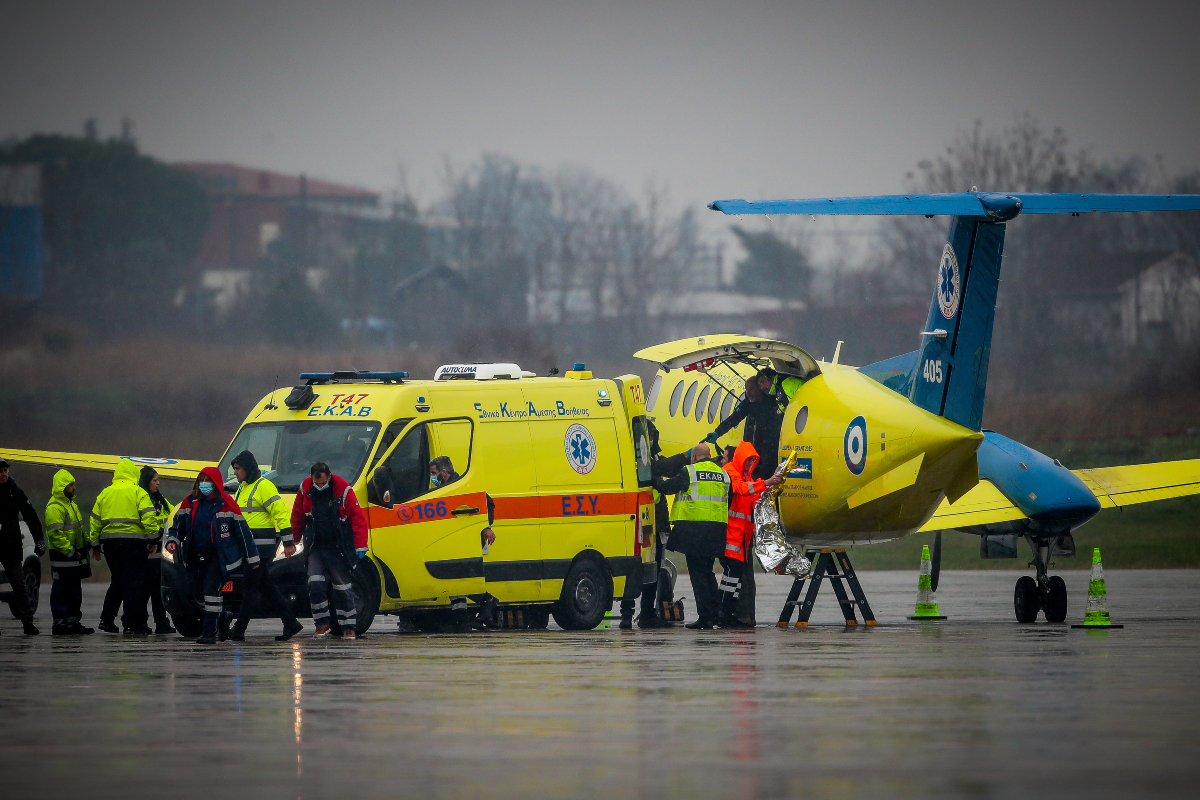 Νωρίτερα, αεροσκάφος-ασθενοφόρο του ΕΚΑΒ μετέφερε στη Θεσσαλονίκη δύο από τους τρεις τραυματίες του δυστυχήματος. Οι δύο νεαροί διακομίστηκαν στο Νοσοκομείο Παπαγεωργίου, όπου είχαν ολοκληρωθεί όλες οι απαραίτητες προετοιμασίες για την υποδοχή και τη νοσηλεία τους.
