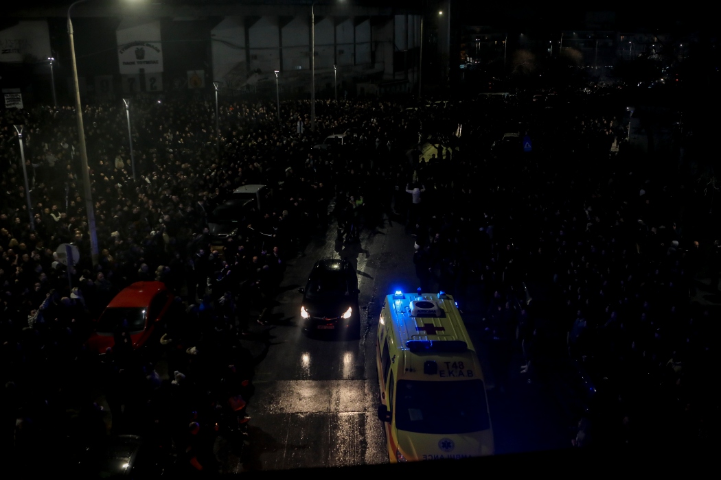 Από εκεί, οι εκλιπόντες μεταφέρθηκαν στο γήπεδο της Τούμπας, συνοδεία μηχανοκίνητης πομπής οργανωμένων οπαδών του Δικεφάλου. Παράλληλα, συγκινητικές στιγμές εκτυλίχθηκαν στην Τούμπα, εν αναμονή των σορών των επτά φιλάθλων του ΠΑΟΚ που έχασαν τη ζωή τους στη Ρουμανία, όπου ο Αρχιεπίσκοπος Λύδδης Δημήτριος βρέθηκε στο άτυπο μνημείο για τους νεαρούς φίλαθλους και τέλεσε επιμνημόσυνη δέηση.