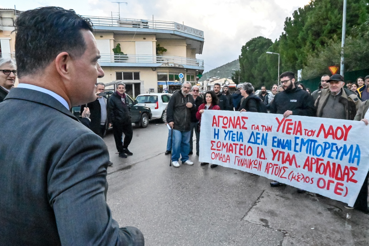 Γεωργιάδης στο Άργος: Διαμαρτυρίες ΚΚΕ για φρεγάτα και εγκαινίαση ορθοπεδικής κλινικής