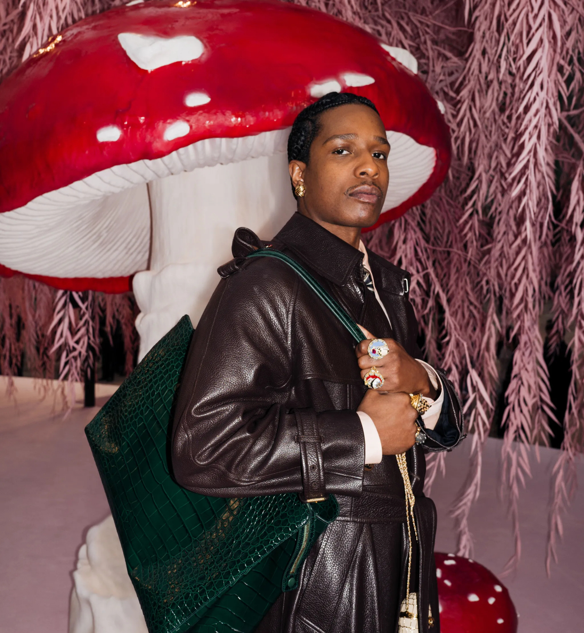 Ο χώρος ήταν από μόνος του δήλωση. Το Grand Palais μεταμορφώθηκε σε μυστικιστικό, παραμυθένιο τοπίο, με γιγάντια σουρεαλιστικά μανιτάρια και ζαχαρένιες ροζ ιτιές να δημιουργούν μια ατμόσφαιρα που έφερνε στο μυαλό κάτι μεταξύ ονείρου και παιδικής φαντασίας.