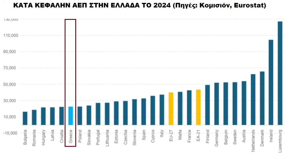 Το «σκληρό» νούμερο: χαμηλό ΑΕΠ ανά κάτοικο, χαμηλή κατάταξη