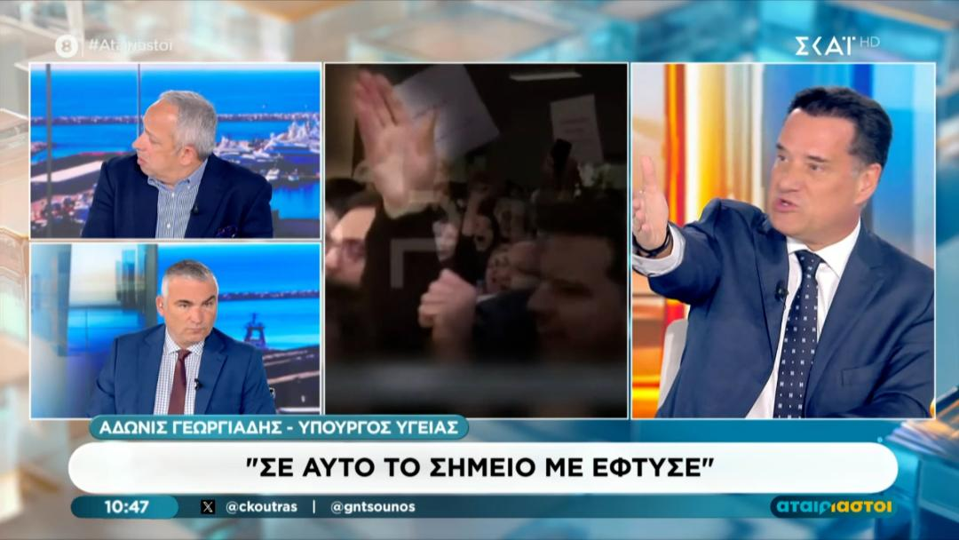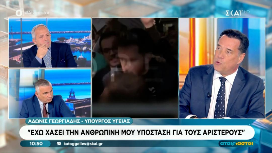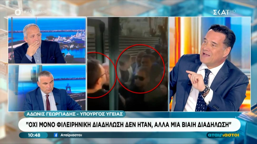 Ο Άδωνις Γεωργιάδης βρέθηκε αντιμέτωπος με την απρόκλητη βία ενός ανθρώπου που βγήκε μόνος του στα κανάλια, ενώ εκείνος διατήρησε ψυχραιμία και νομιμότητα.