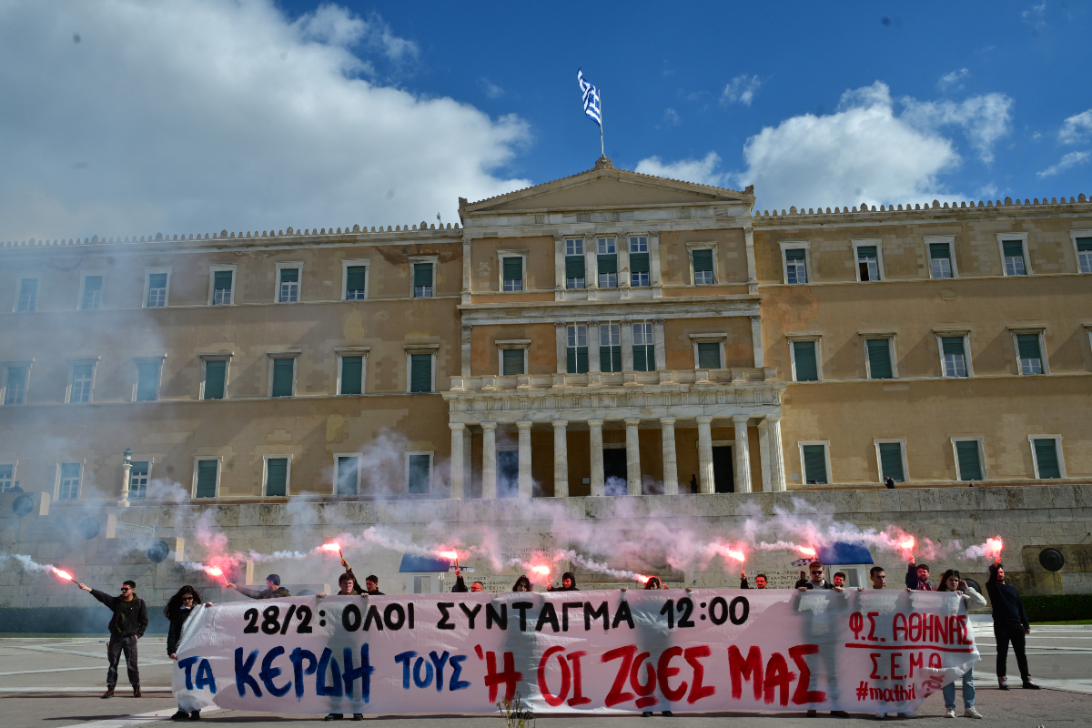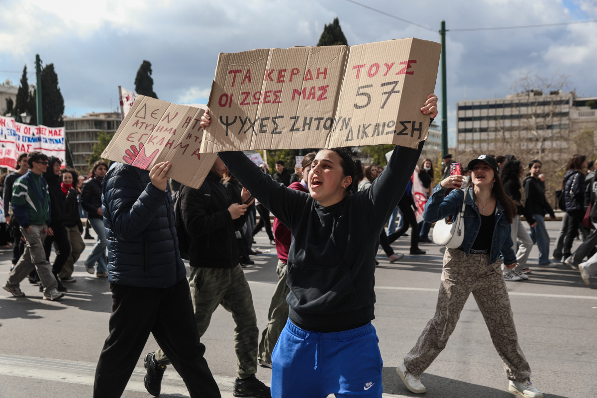 Σε εικόνες που έχουν πλέον γίνει σύμβολο των τελευταίων χρόνων, οι δρόμοι γέμισαν ξανά με μαθητές και φοιτητές, καθώς η συμπλήρωση τριών χρόνων από την τραγωδία στα Τέμπη συνεχίζει να κινητοποιεί τη νέα γενιά. Στην Αθήνα, η πορεία κατέληξε στη Βουλή, όπου φοιτητές έγραψαν ξανά με κόκκινη μπογιά τα ονόματα των θυμάτων στο σημείο-ορόσημο μπροστά από το Κοινοβούλιο, σε μια πράξη μνήμης που δεν αφήνει περιθώρια για λήθη.
