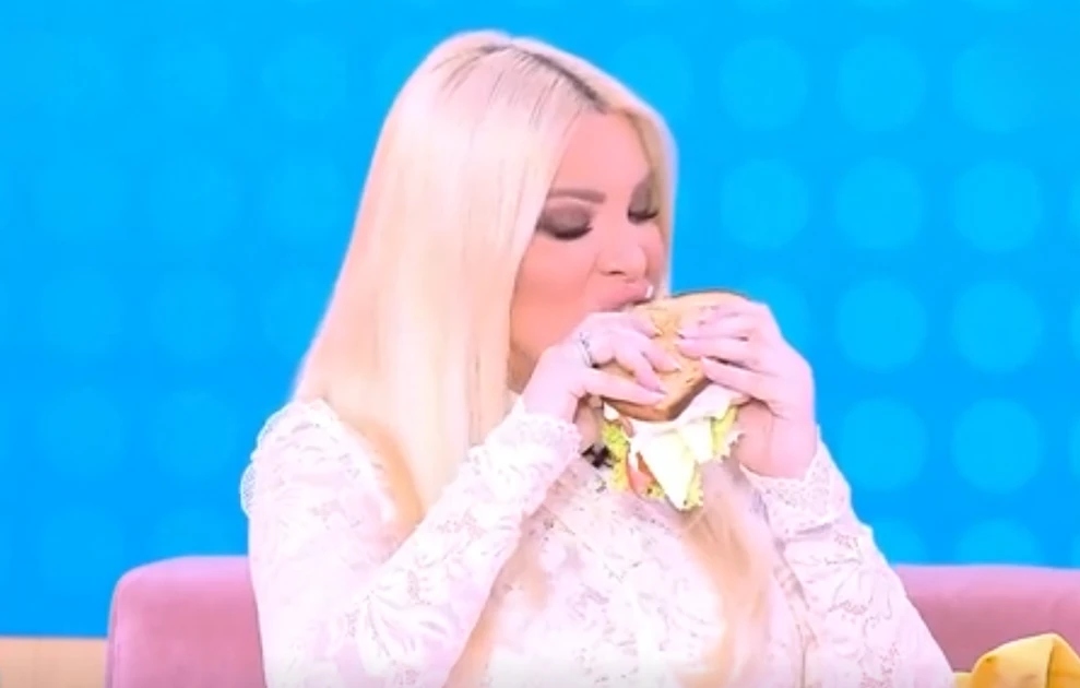 Σε αυτό υπήρχε ένα εντυπωσιακό τοστ από χωριάτικο ψωμί, το οποίο η παρουσιάστρια άρχισε να απολαμβάνει, θεωρώντας πως ο φακός είναι στραμμένος αποκλειστικά στην αστρολόγο.