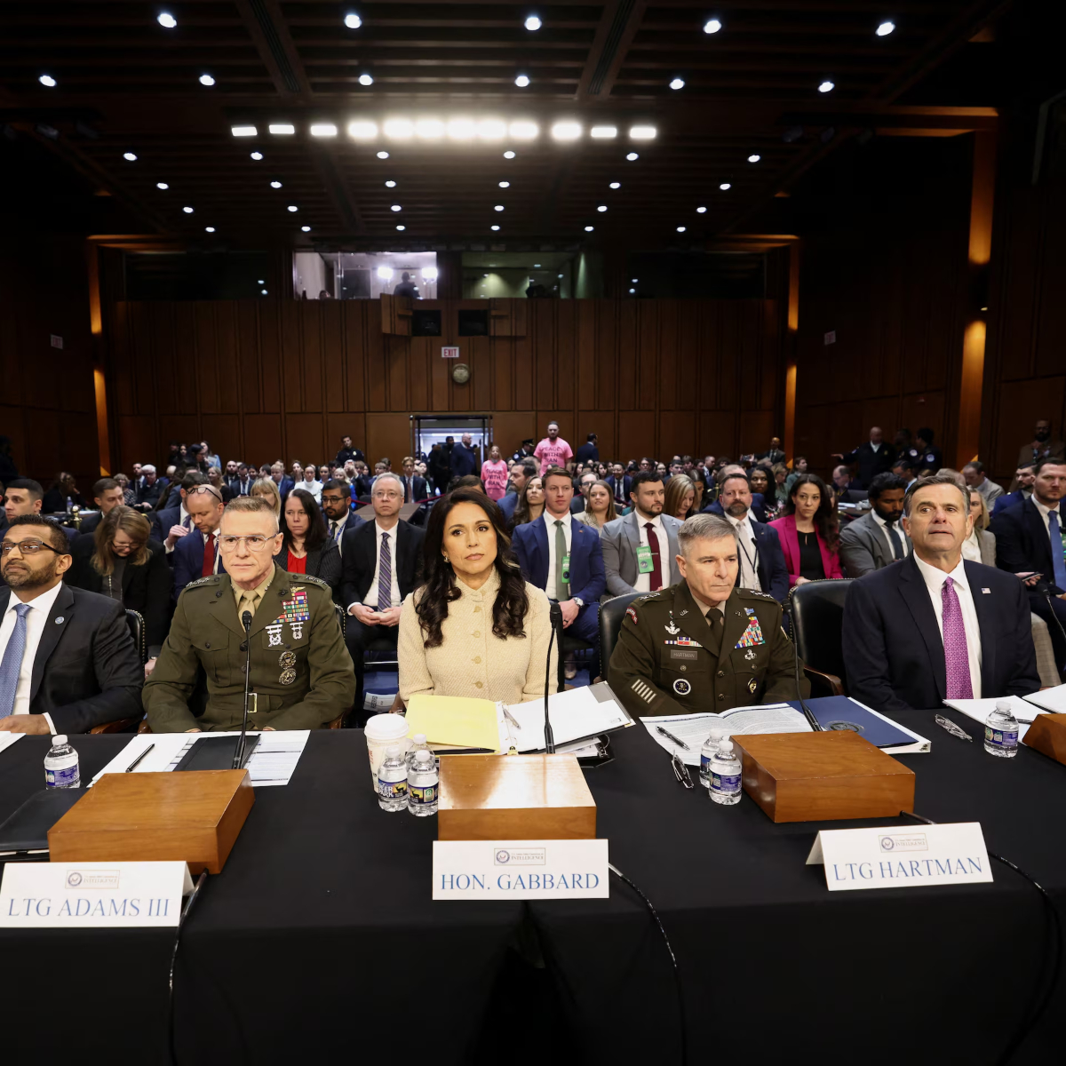Στην ακρόαση, η Γκάμπαρντ σημείωσε επίσης ότι η αμερικανική κοινότητα πληροφοριών εκτιμά πως η ιρανική κυβέρνηση «φαίνεται να παραμένει άθικτη αλλά σε μεγάλο βαθμό αποδυναμωμένη» έπειτα από τα πλήγματα στην ηγεσία και στις στρατιωτικές της δυνατότητες. Συμπλήρωσε ακόμη ότι οι δυνατότητες προβολής συμβατικής στρατιωτικής ισχύος του Ιράν έχουν σε μεγάλο βαθμό καταστραφεί, περιορίζοντας τις άμεσες επιλογές του καθεστώτος. Παρά ταύτα, προειδοποίησε ότι αν το ιρανικό καθεστώς επιβιώσει, είναι πιθανό να επιχειρήσει μια πολυετή προσπάθεια ανασυγκρότησης των πυραυλικών και μη επανδρωμένων δυνάμεών του.