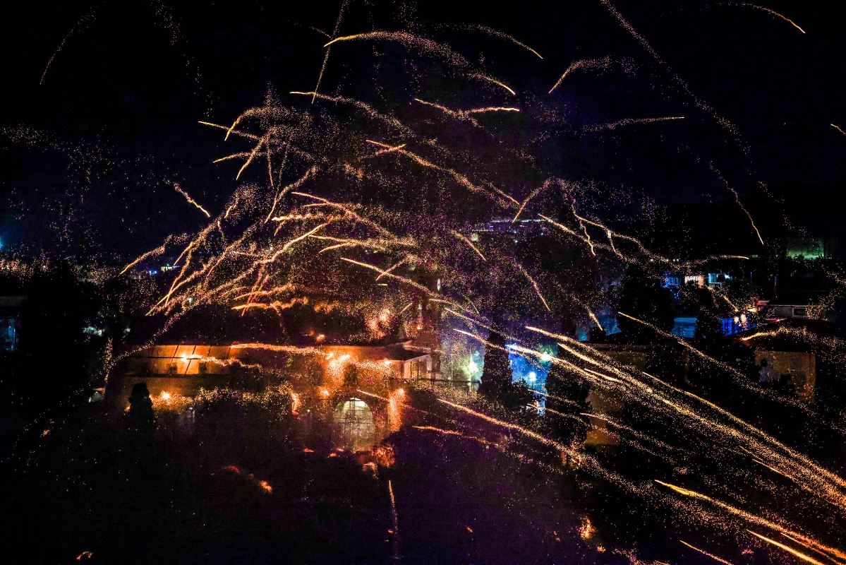 Το βράδυ της Ανάστασης, ο ουρανός φωτίζεται από χιλιάδες αυτοσχέδιες ρουκέτες που εκτοξεύονται ανάμεσα σε δύο ενορίες, μετατρέποντας τη νύχτα σε ένα φαντασμαγορικό σκηνικό γεμάτο φως, ένταση και συγκίνηση. Οι θεατές παρακολουθούν με δέος το θέαμα, ενώ η αδρεναλίνη και ο ενθουσιασμός κορυφώνονται καθώς οι ρουκέτες διασχίζουν τον ουρανό αφήνοντας φωτεινά ίχνη.