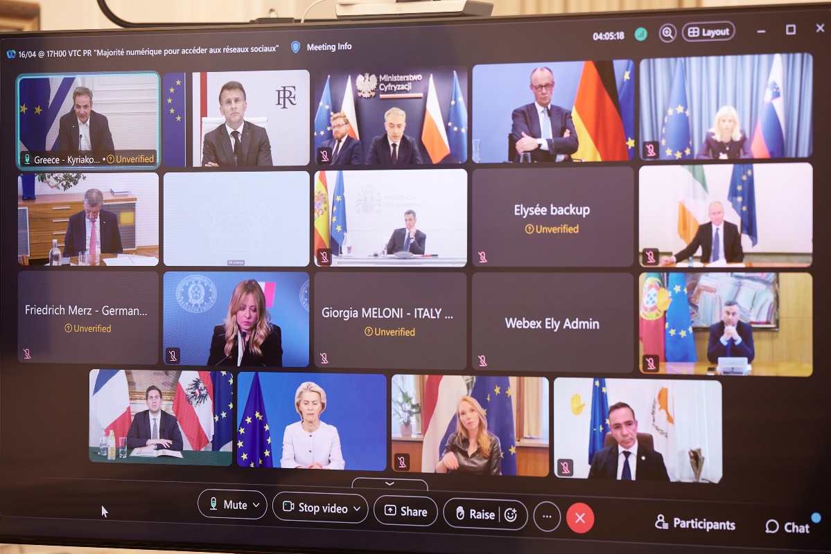 Ο πρωθυπουργός Κυριάκος Μητσοτάκης συμμετείχε σε τηλεδιάσκεψη Ευρωπαίων ηγετών με βασικό θέμα την προστασία των ανηλίκων στο διαδίκτυο και τη δημιουργία ενός κοινού ευρωπαϊκού πλαισίου για την πρόσβαση στα μέσα κοινωνικής δικτύωσης. Η πρωτοβουλία για τη σύγκληση της συνάντησης ανήκε στον Πρόεδρο της Γαλλίας Εμμανουέλ Μακρόν, ενώ στη συζήτηση έλαβαν μέρος εκπρόσωποι από 14 κράτη-μέλη της Ευρωπαϊκής Ένωσης, καθώς και η Πρόεδρος της Ευρωπαϊκής Επιτροπής Ούρσουλα φον ντερ Λάιεν.