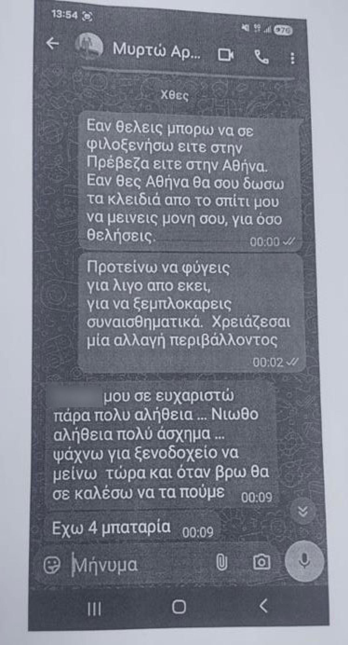 Την ίδια ώρα, νέα στοιχεία έρχονται να συμπληρώσουν το παζλ των τελευταίων ωρών της Μυρτώς. Σύμφωνα με πληροφορίες που μεταδόθηκαν σήμερα, 66χρονος άνδρας από την Πρέβεζα φέρεται να κατέθεσε ότι είχε επικοινωνήσει μαζί της μέσω βιντεοκλήσης λίγες ώρες πριν από το μοιραίο τέλος. Κατά την κατάθεσή του, ανέφερε ότι είχε γνωρίσει τη 19χρονη μέσω του 23χρονου που εμπλέκεται στην υπόθεση, καθώς εκείνος τον είχε προσθέσει σε ομαδική συνομιλία περίπου εννέα ημέρες πριν από το περιστατικό. Ο ίδιος φέρεται να ισχυρίστηκε ότι η Μυρτώ τού είχε πει πως ήταν σε κακή ψυχολογική κατάσταση, ότι είχε φύγει από το σπίτι της και ότι δεν είχε χρήματα, με αποτέλεσμα να της στείλει 220 ευρώ για να εξασφαλίσει κατάλυμα και να παραμείνει ασφαλής.